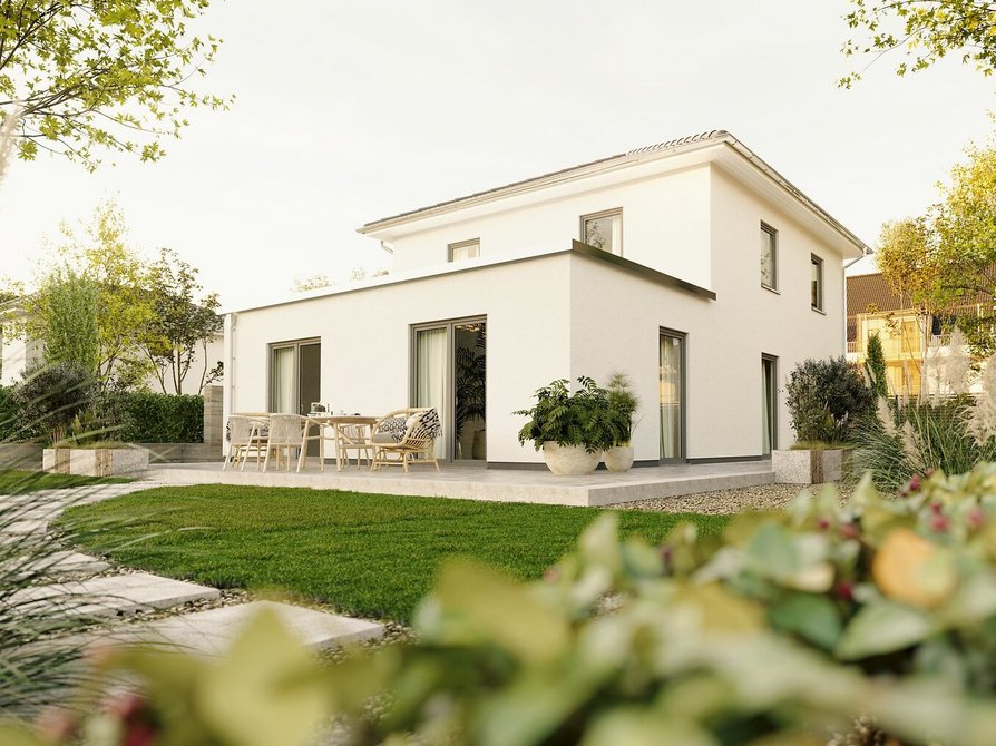 Unser Stadthaus Flair 124 gibt es auch mit Staffelgeschoss, weshalb Sie einen direkten Vergleich zur Variante mit zwei Vollgeschossen haben. Auch mit Anbau ist dieses Massivhaus möglich. Prüfen Sie den Bebauungsplan Ihres Grundstücks und entscheiden Sie, welche Variante auf Ihren Grund und Boden passt. Gerne gehen wir auch gemeinsam mit Ihnen den B-Plan durch und beantworten offene Fragen.